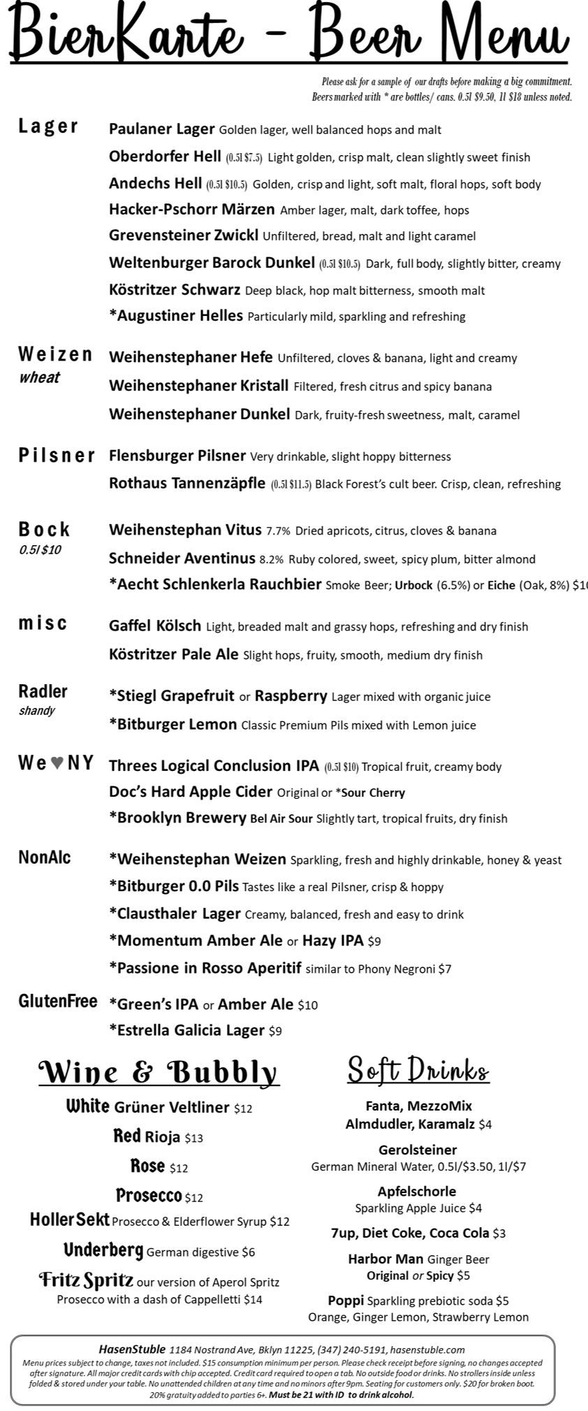 Hasenstüble has always been about creating a space that is open to friends and neighbors from all walks of life, a space where everyone feels home. The same holds true for our website. We’re committed to making our website usable by all people; we are working with a web developer to meet the guidelines. If you need assistance or have questions and concerns please reach out to us at hasenstuble@gmail.com.